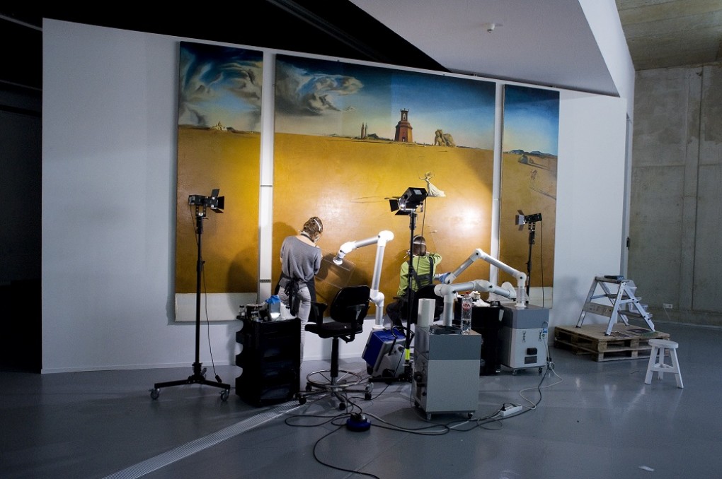 Van 12 juni tot 8 september 2010 vindt de restauratie van Salvador Dalí’s grote drieluik ‘Landschap met touwtjespringend meisje’ uit 1936 plaats in een van de tentoonstellingszalen. Het is voor het eerst dat het museum een restauratie uitvoert in aanwezigheid van publiek. De restauratoren van het drieluik komen tot een wel heel verbazingwekkende ontdekking...