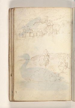 The little volume seems to date originally to the late fifteenth century and was first used to make coloured model drawings of animals, birds, insects and plants on alternate openings, leaving at least half of the pages empty.57 Later on, probably in the second or third quarter of the sixteenth century, it was used by a second draughtsman, who added landscapes and other subjects with pen and brown ink on many of the empty pages, stopping at the middle of the sixth and last quire, but leaving the last two quires blank on most of the hair-side openings. Finally, some drawings were added on the last pages (fol. 47 verso, 48 recto) and the back endpaper (fol. 49 recto, 49 verso-50 recto), probably by later owners.