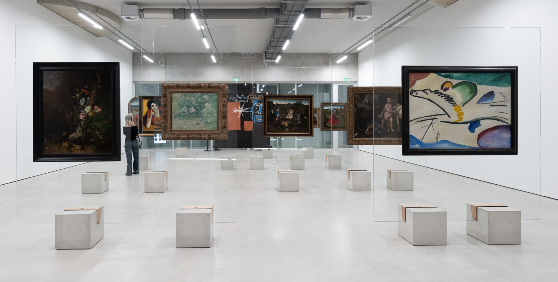 Instead of being hung on the wall, the paintings are displayed on free-standing easels. The transparent glass enables visitors to see the backs of the paintings, which provide information about their materials, techniques and provenance.