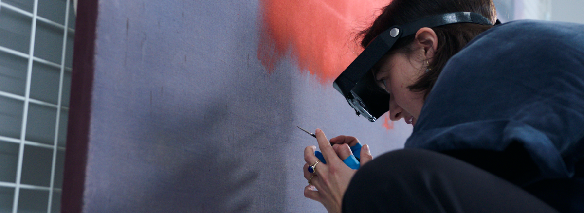Pause: “Rothko maakte zijn verf zelf, met hazenlijm en verschillende pigmenten. Uit onderzoek blijkt dat hij bij Grey, Orange on Maroon, No. 8 heel weinig bindmiddel gebruikte. Daardoor ontstaat een poederachtige, matte verflaag die al bij de kleinste aanraking kan worden weggeveegd. Omdat hij zonder traditionele grondering werkte, ligt de verf direct op het doek en is het oppervlak extra kwetsbaar. Voor de restauratie moest ik daarom een speciale verf ontwikkelen die dezelfde matte uitstraling behoudt én volledig reversibel is. Dat betekende dat ik extreem voorzichtig te werk moest gaan en het oppervlak alleen mocht aanraken met de punt van het penseel.”